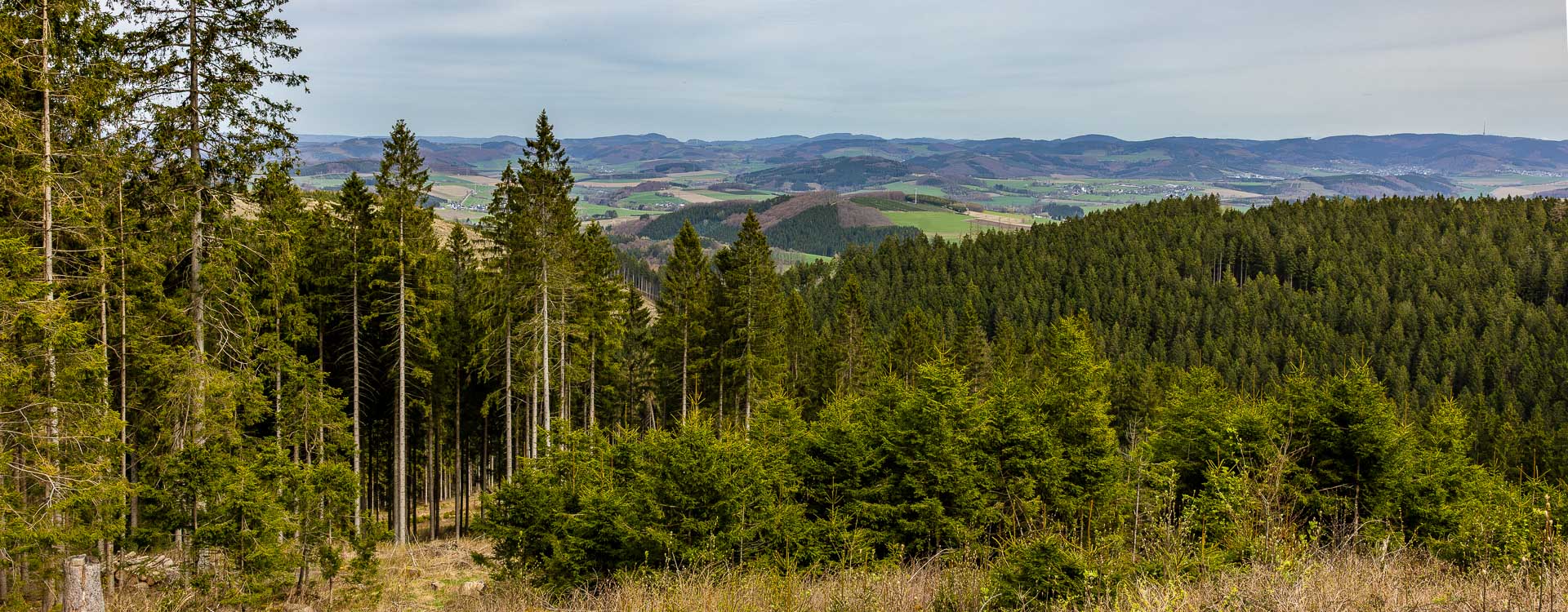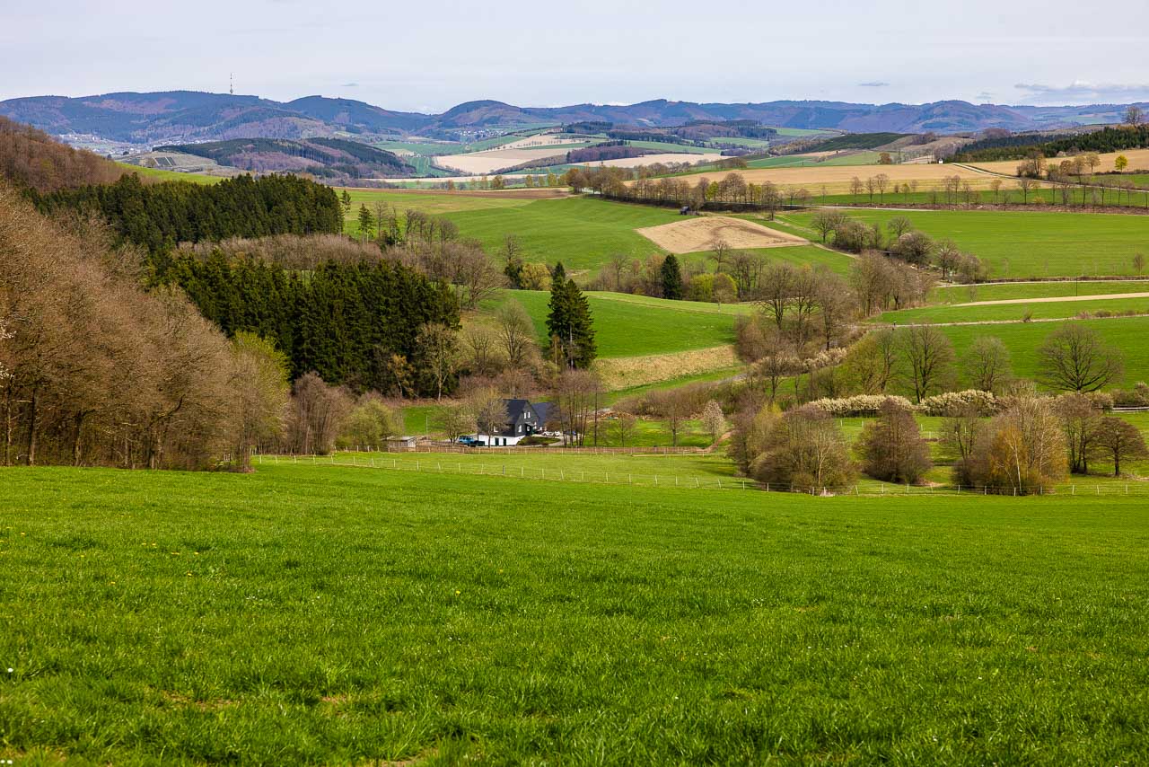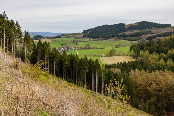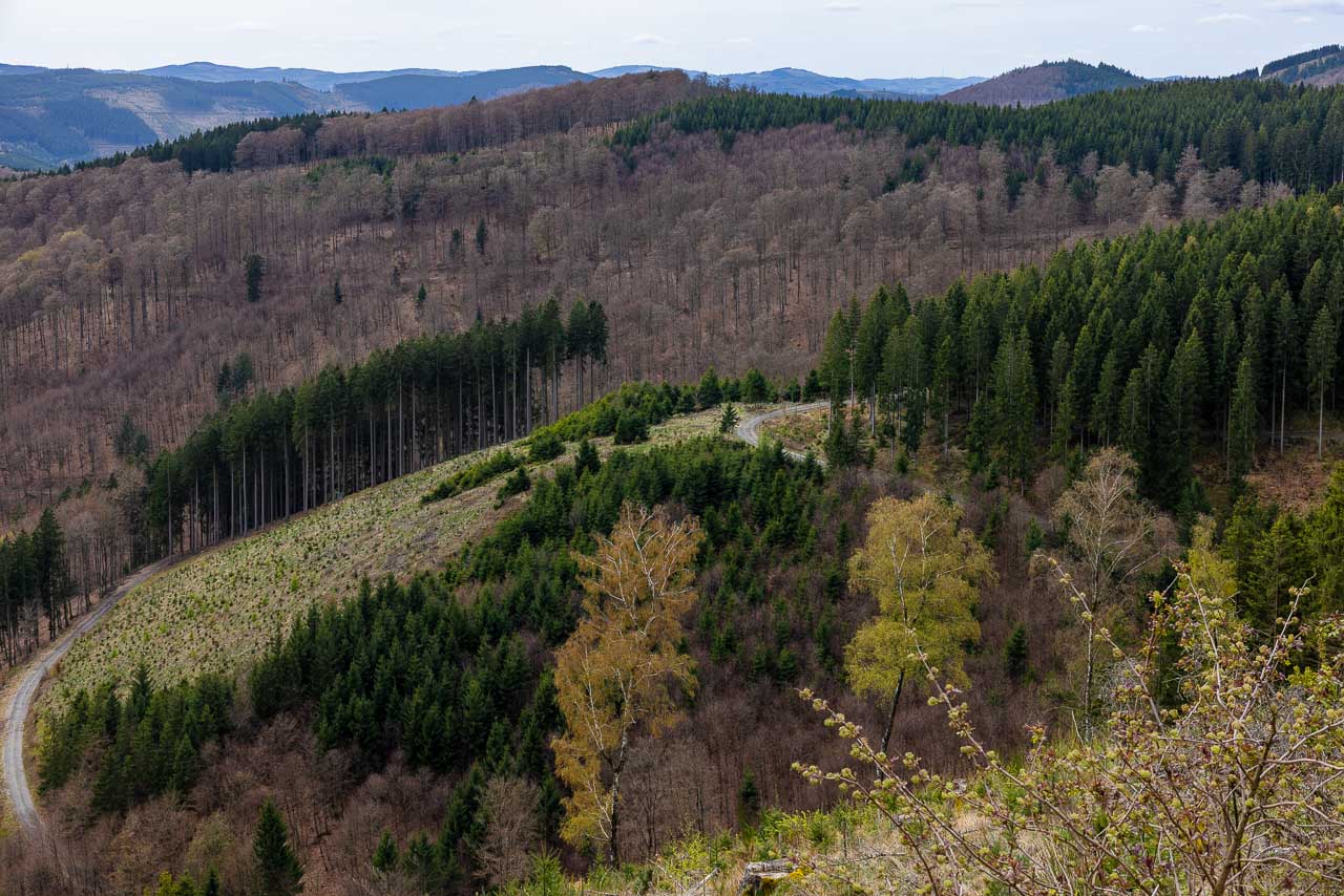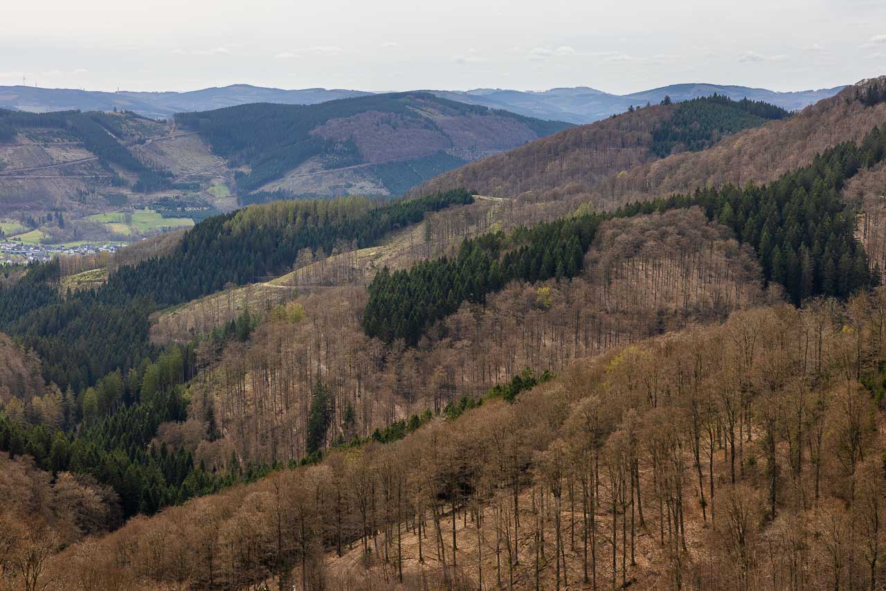 Wir waren mal wieder am Auergang auf 684 Metern Höhe unterwegs. Auch wenn die Sonne diesmal fehlte und die Buchenwälder noch kein Laub tragen, ist die Aussicht von dort oben immer weit und klar. Man merkt schnell, dass die Landschaft zu jeder Jahreszeit ihren Reiz hat, ganz egal, ob die Bäume gerade grün sind oder nicht.