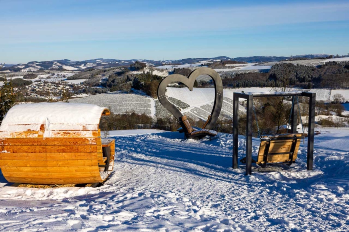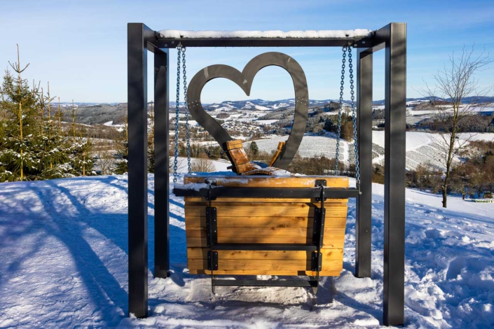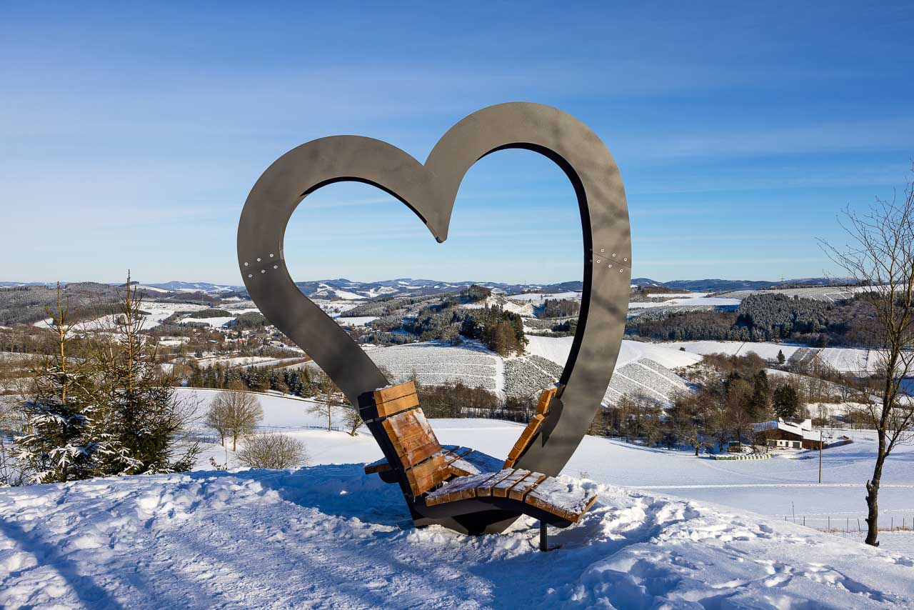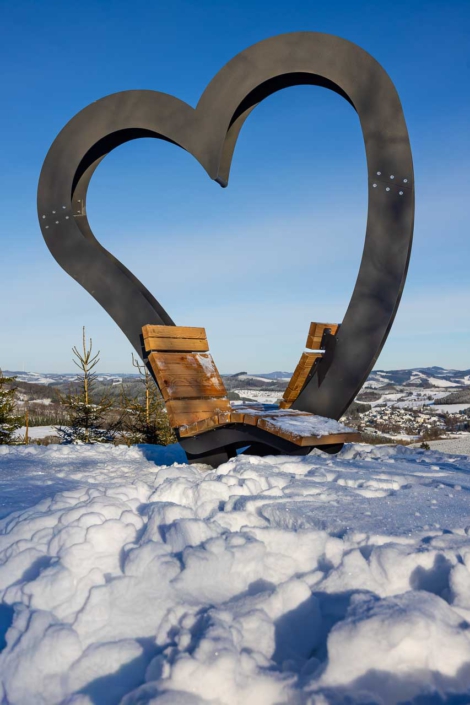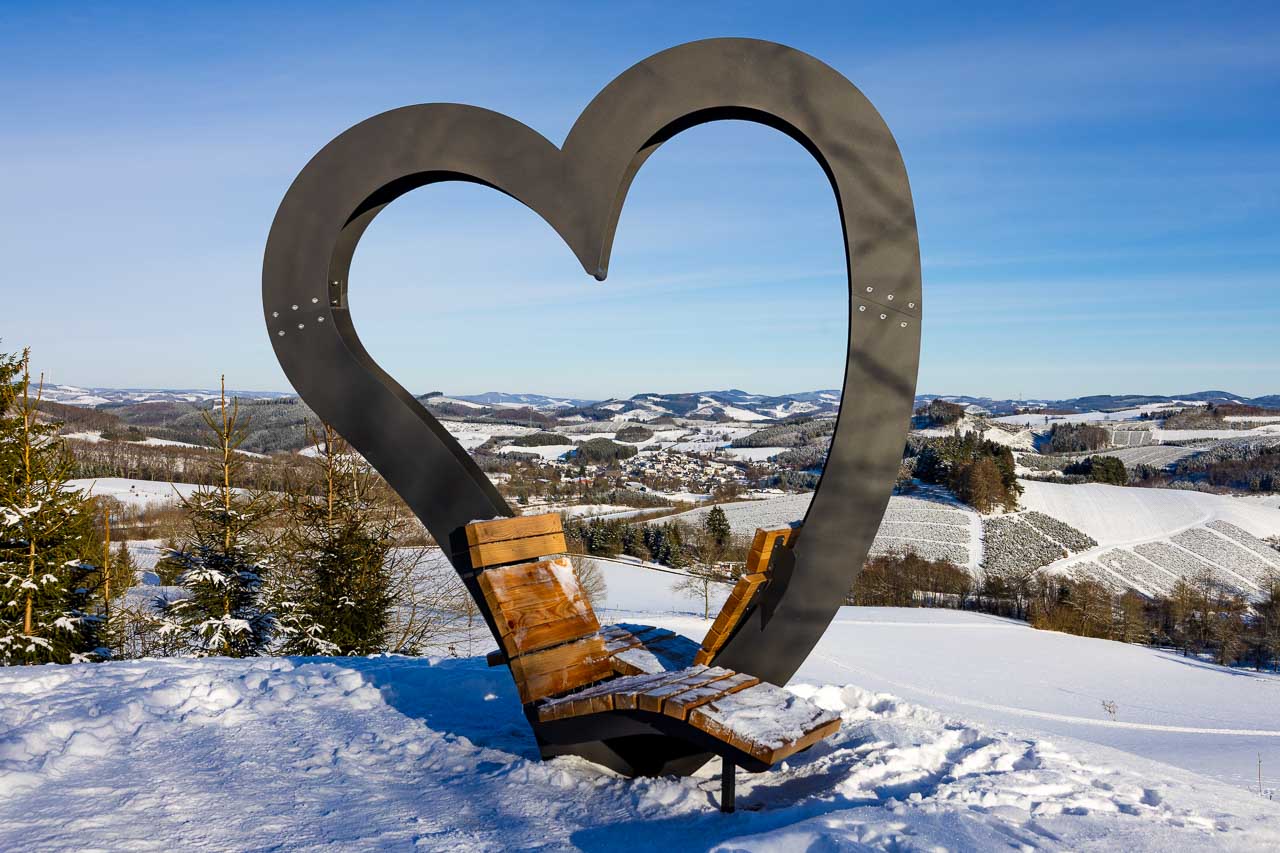 Oberhalb von Cobbenrode gibt es einen besonderen Aussichtspunkt für alle, die die Natur lieben: Ein markantes Metall-Herz rahmt hier den weiten Blick über das Dorf perfekt ein. Dieser Ort lädt dazu ein, den Moment zu genießen und die Seele baumeln zu lassen. Man schaut direkt durch das Herz hinunter auf die Häuser des Dorfes – ein Anblick, der zu jeder Jahreszeit seinen ganz eigenen Charme hat. Gleichzeitig bietet das Herz einen wunderschönen Fotospot, der die idyllische Kulisse perfekt einfängt.