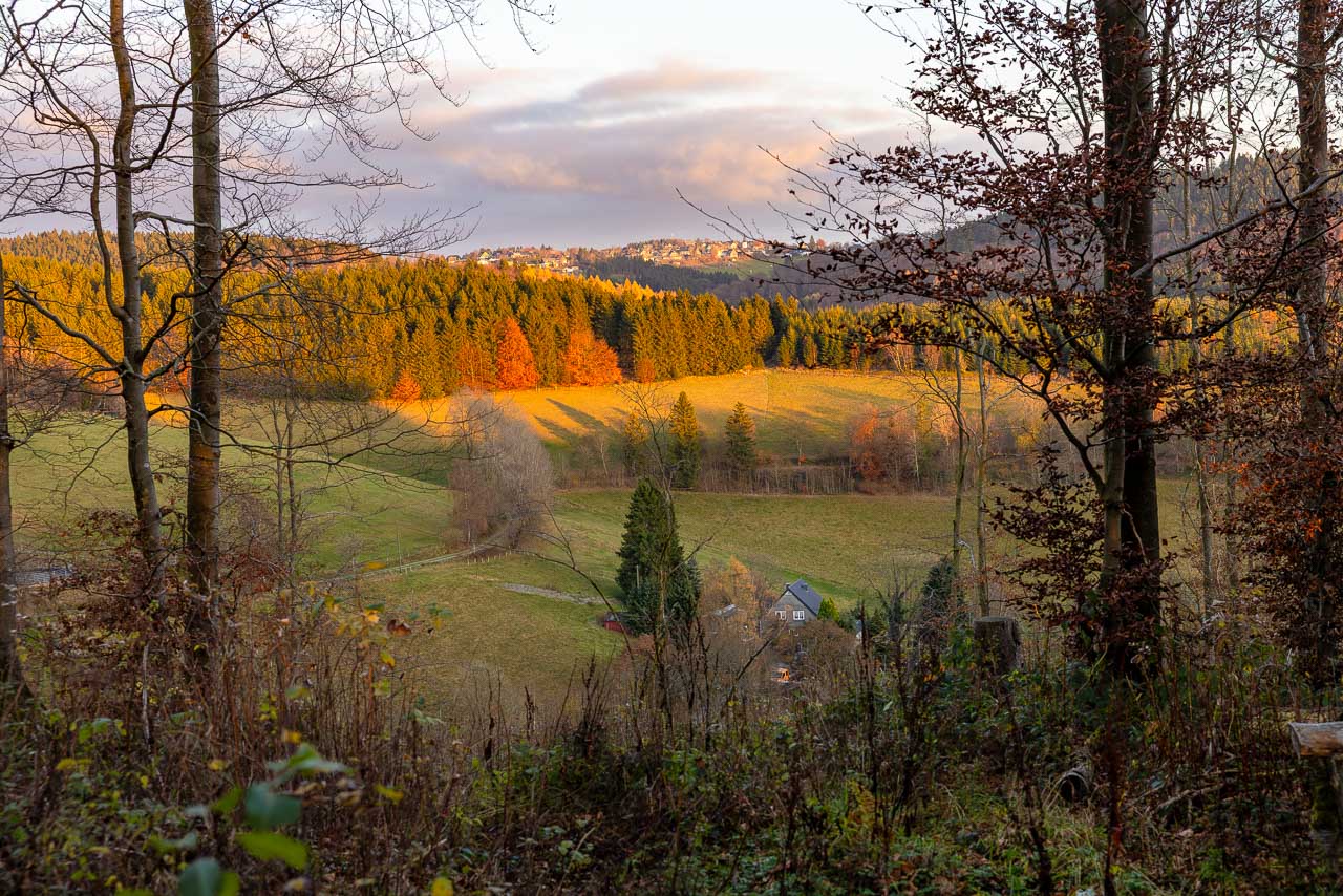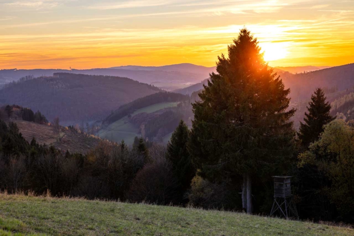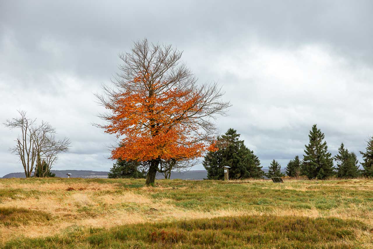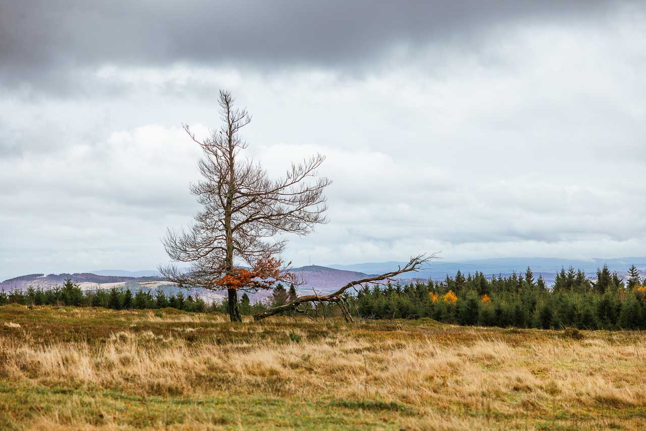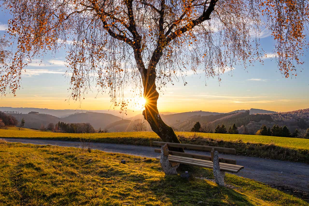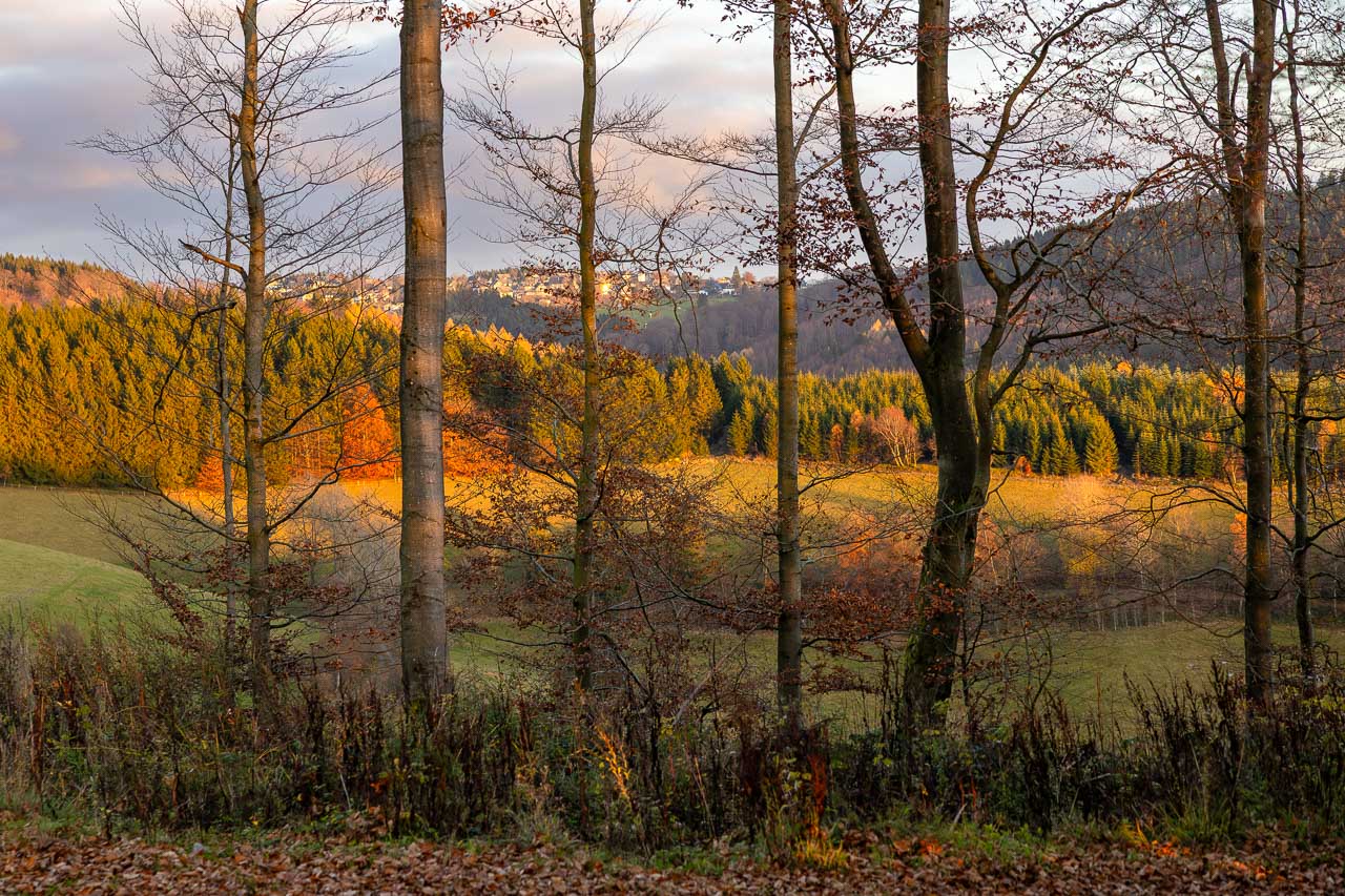 Anfang November war ich nochmal mit dem Rad unterwegs und habe mit der Kamera die letzten Farbtupfer in der Natur eingefangen. Hier und da hängen noch ein paar bunte Blätter an den Bäumen, doch die schönen Herbsttage sind gezählt. Eine meiner Radtouren ging vom Kahlen Asten über den Rothaarsteig bis nach Kühhude und von da zur Hängebrücke. Ein anderes Mal war ich auf dem Herhagen in Nordenau unterwegs und habe dort die Abendstimmung eingefangen.