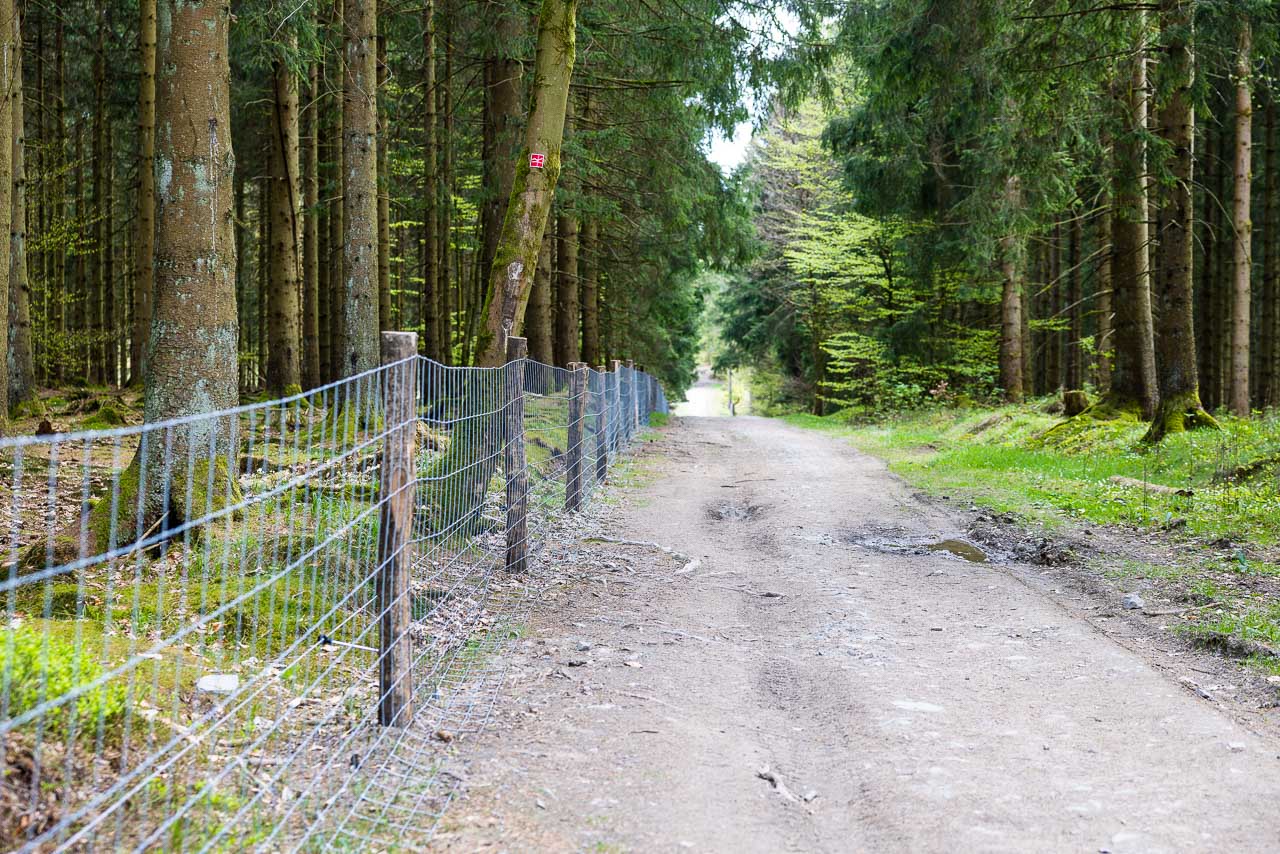Leider haben beim Bau der Zäune auch einige Pfadabschnitte am Rothaarsteig gelitten. Besonders der schöne Naturpfad zwischen Kühhude und Jagdhaus ist momentan ziemlich in Mitleidenschaft gezogen und hat durch die Arbeiten seinen ursprünglichen Charakter verloren.