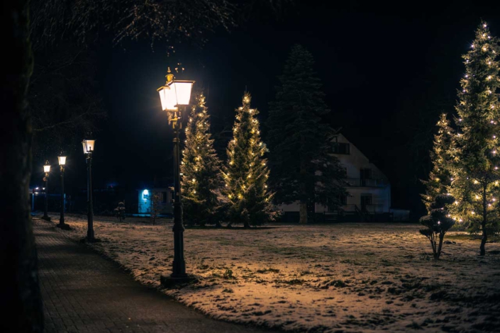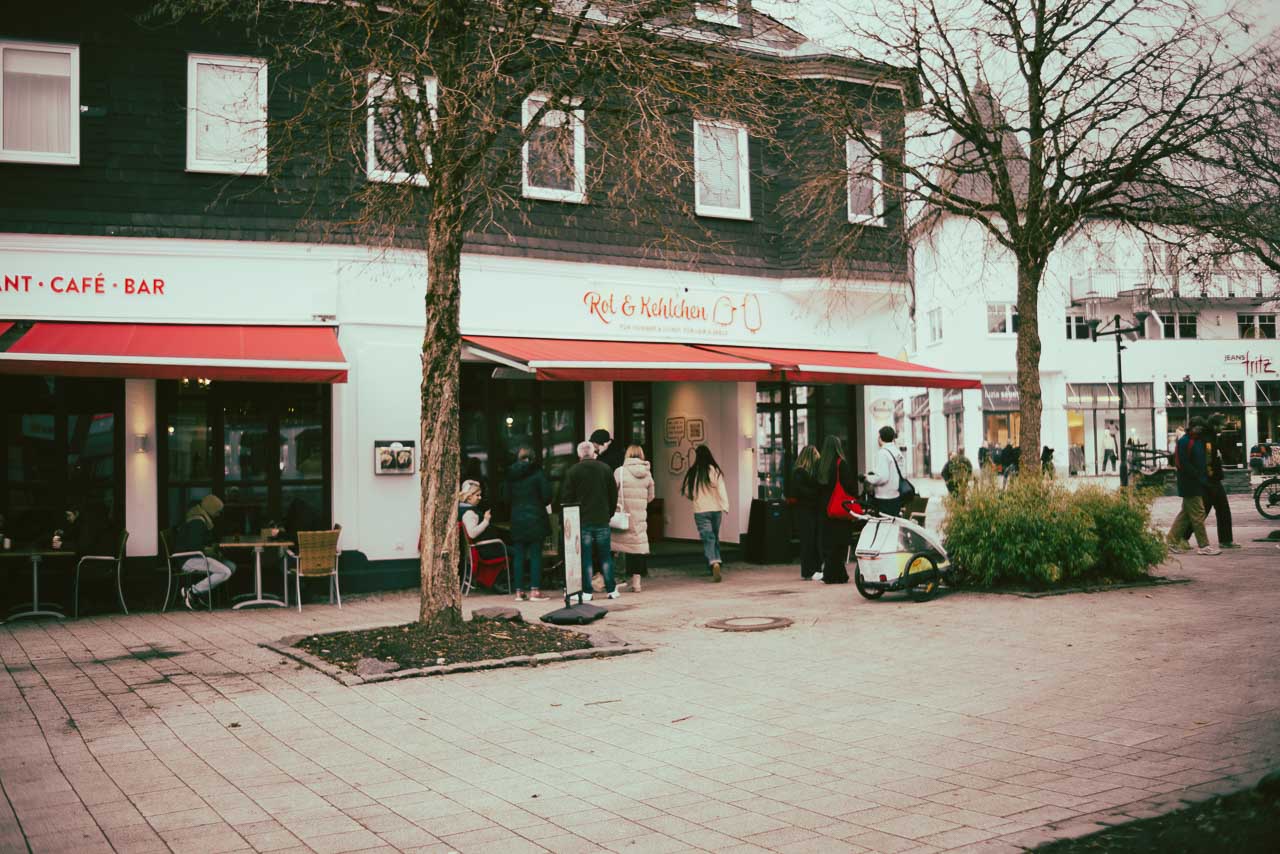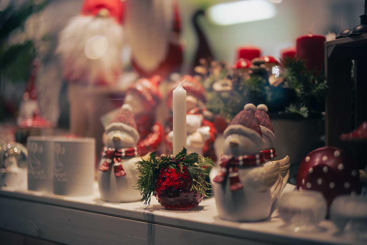 Am Marktplatz und zwischen den Läden finden sich gemütliche Cafés und Restaurants, die zum Verweilen einladen und in denen man sich zwischendurch aufwärmen kann. Feuersäulen lodern am Eingang, heißer Kaffee dampft in den Tassen und ein Duft von Zimt und Nelken zieht durch die Räume, während draußen ein frisches Lüftchen weht.