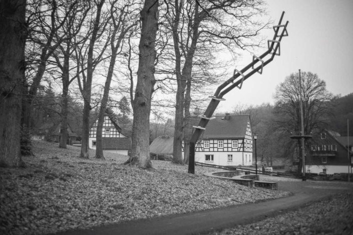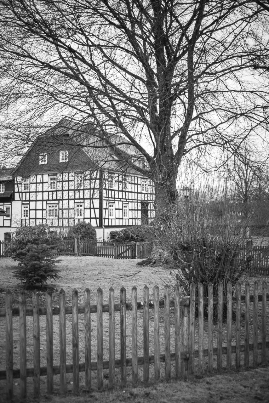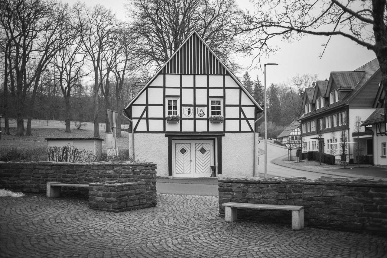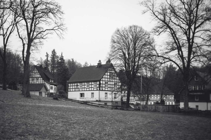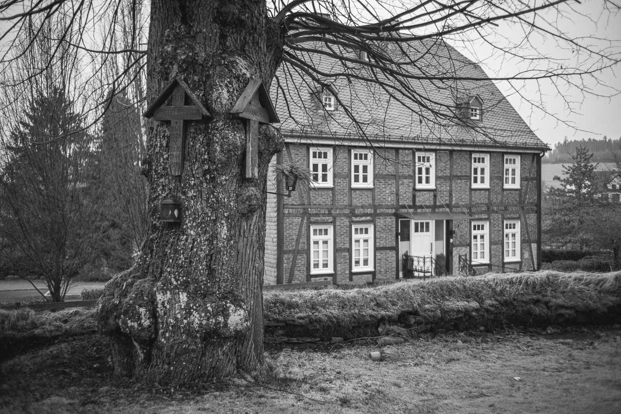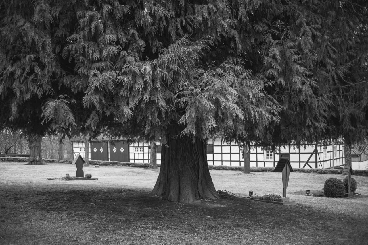 Auf meinem letzten fotografischen Streifzug durch das Schmallenberger Sauerland hatte ich ein echtes Stück Fotogeschichte auf die Kamera geschraubt: das Ashai Super-Takumar 35mm f/2.0. Dieses Vintage-Objektiv zeichnet sich nicht nur durch seine mechanische Präzision aus, sondern weist auch eine chemische Besonderheit auf: Die Verwendung von schwach radioaktivem Thorium im Glas. Mit der Zeit verleiht dieses Material der Linse eine charakteristische gelbliche Tönung, die den Bildern einen unverwechselbaren, warmen Nostalgie-Look verleiht. Die Strahlung ist allerdings so minimal, dass man beim Fotografieren wahrscheinlich eine höhere Dosis durch das natürliche Sonnenlicht abbekommt – mein Geigerzähler bleibt jedenfalls tiefentspannt und ich leuchte nach dem Fotografieren auch nicht im Dunkeln. Aber genau dieses kleine „strahlende“ Extra macht das Takumar zur idealen Wahl für das entschleunigte Fotografieren, bei dem man sich bewusst Zeit für das Motiv nimmt. Mit dieser Kamera-Kombination im Gepäck führte mich mein Weg nach Wormbach, um dort die mystische und geheimnisvolle Stimmung der Kirche und des Kirchhofs einzufangen.