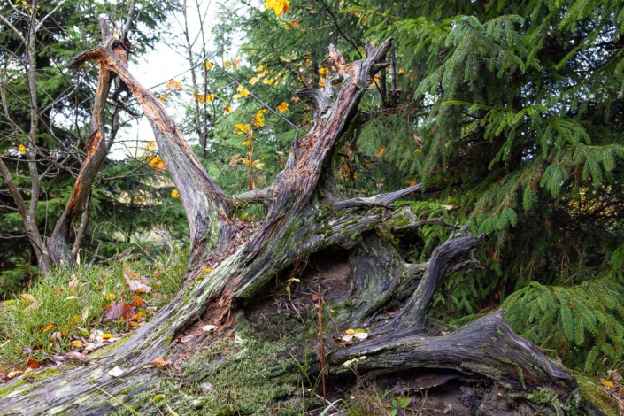 Puren Naturgenuss erleben Wanderer und Besucher auf dem 1000 Meter langen Kyrill-Pfad in dem kleinen Schmallenberger Dörfchen Schanze. Hier taucht man für kurze Zeit ab in eine ursprüngliche Natur. Ein schmaler Pfad schlängelt sich vorbei an wild gewachsenen Bäumen und Sträuchern und führt über entwurzelte und vermooste Baumstämme. Der Kyrill-Pfad ist einer von den 42 Seelenorten des Sauerlandes. Es ist ein Ort, wo man Vergänglichkeit und Neubeginn eines Waldes beobachten oder einfach nur für einen Moment innehalten und genießen kann.