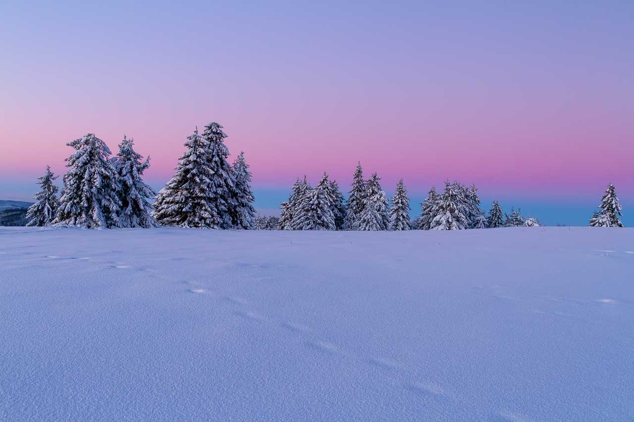 Wenn der Schnee das Land bedeckt, wird es still in der Natur. Doch auch der Winter hat seinen ganz eigenen Zauber. Bei klirrender Kälte funkeln unzählige kleine Eiskristalle wie Juwelen im Licht der Sonne. Bei Nebel wird die Schneelandschaft in ein mystisches, manchmal auch surreales Licht getaucht und Raureif zaubert bizarre Formen an kleine Äste und Sträucher.