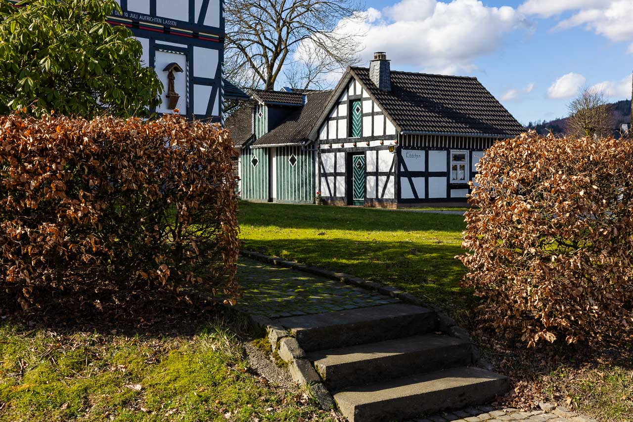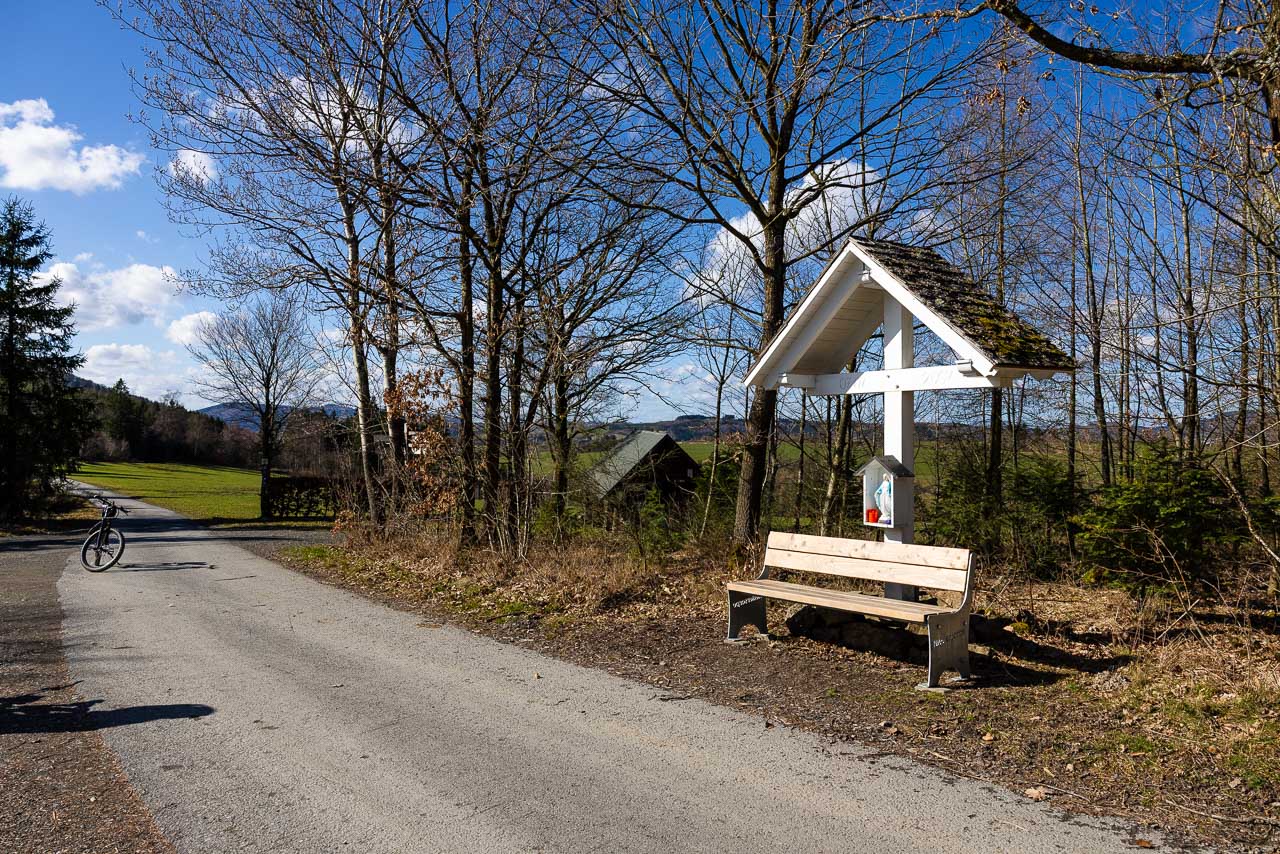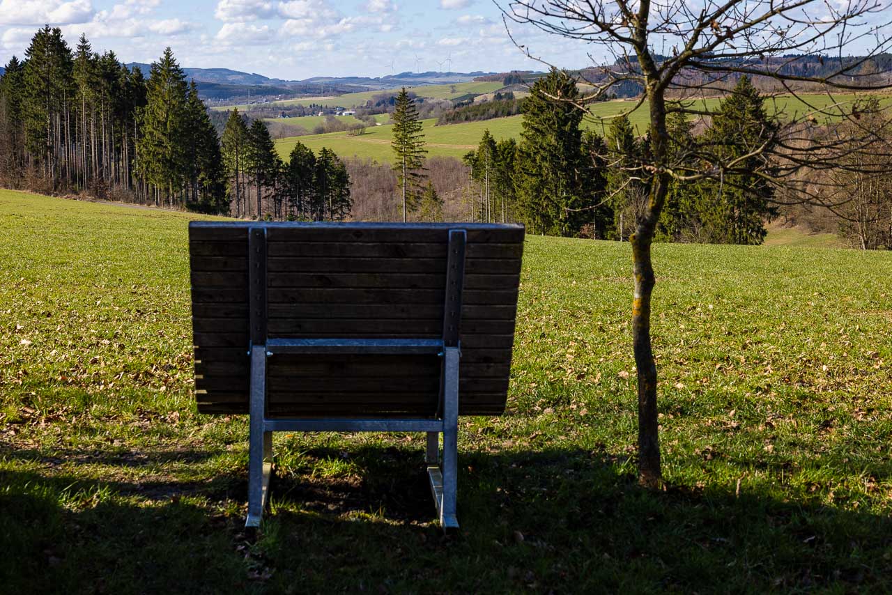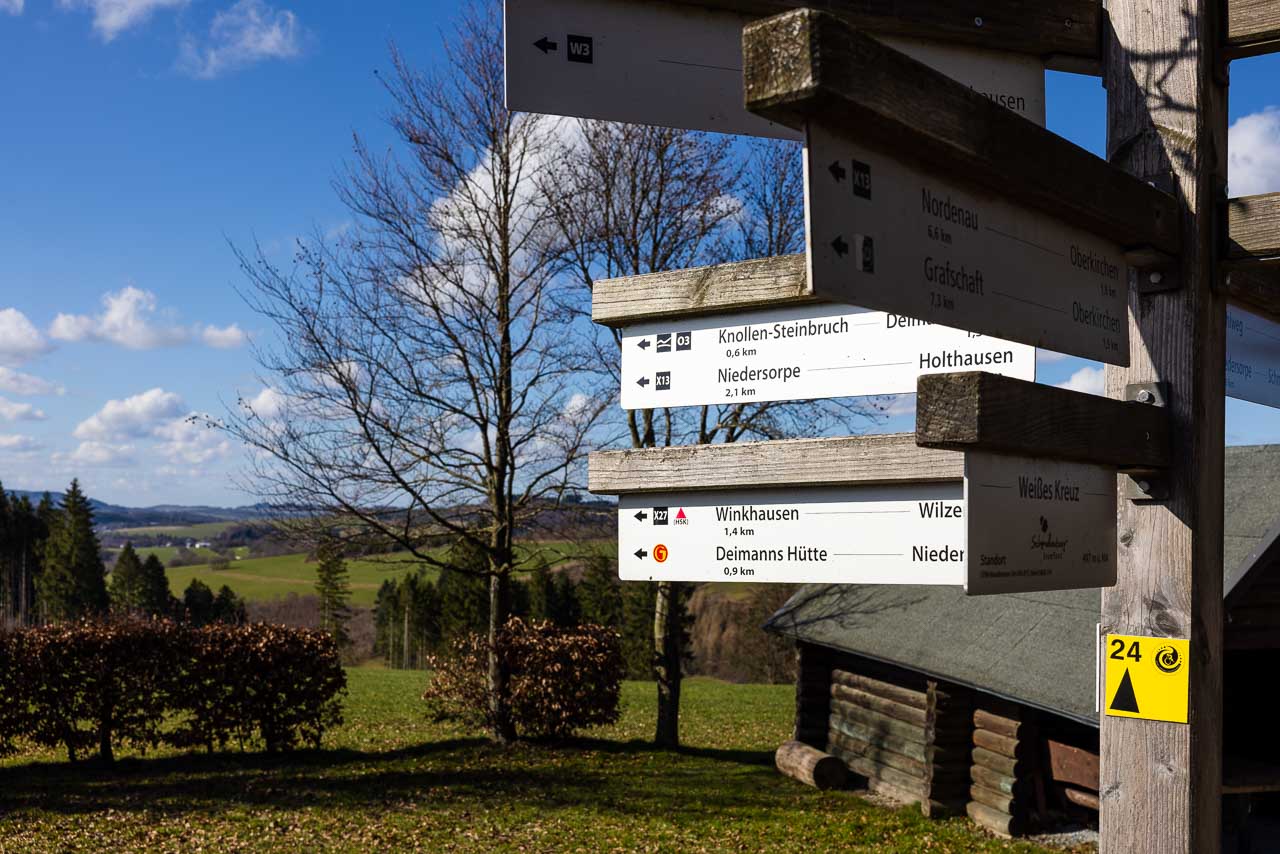 Von dort aus verabschiedeten wir uns aus dem Tal und machten uns an den Aufstieg zum Weißen Kreuz oberhalb von Niedersorpe. Die Steigung lohnt sich jedes Mal, denn oben angekommen, wird man mit einem weiten Blick über die Landschaft belohnt.
