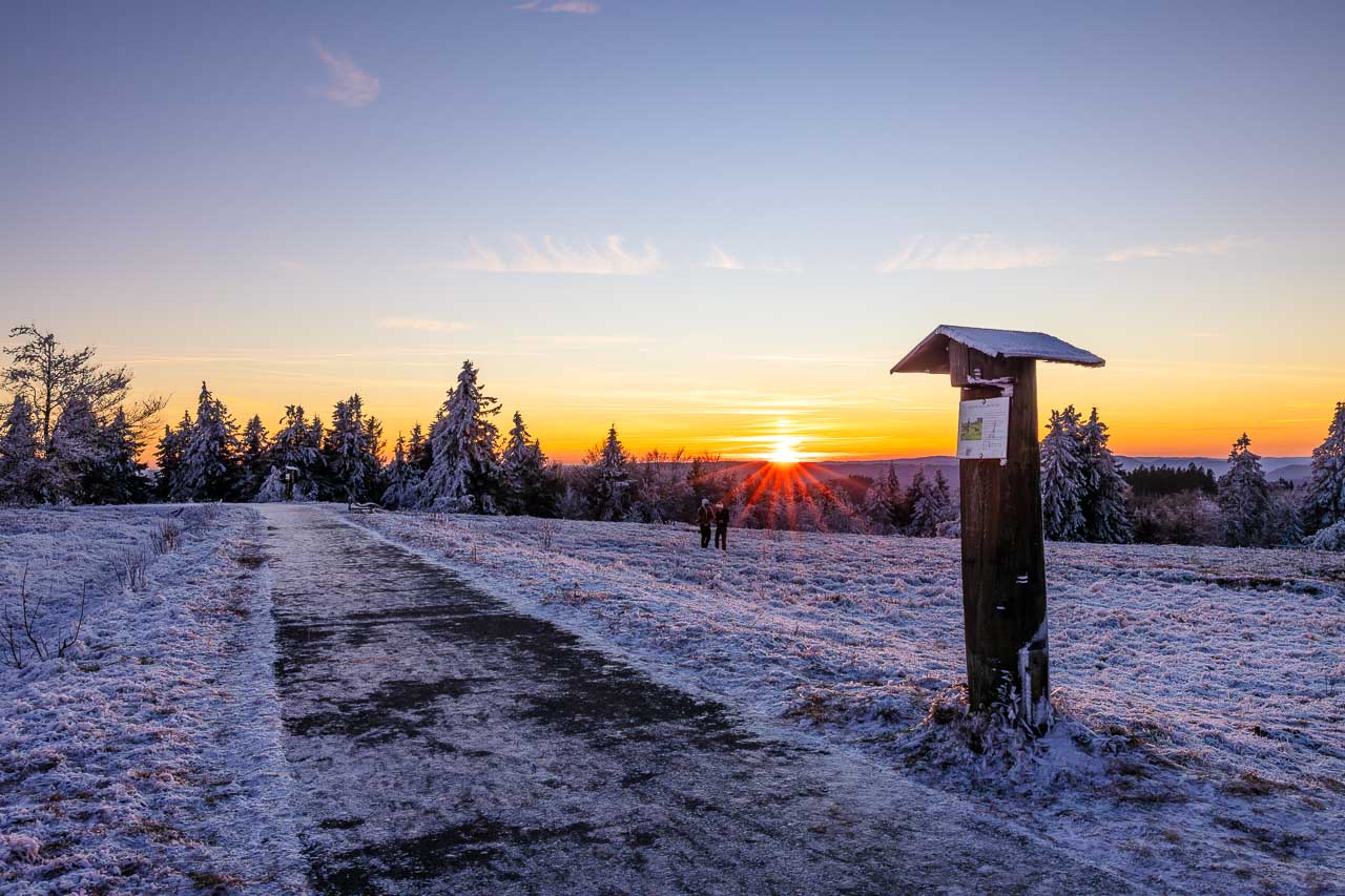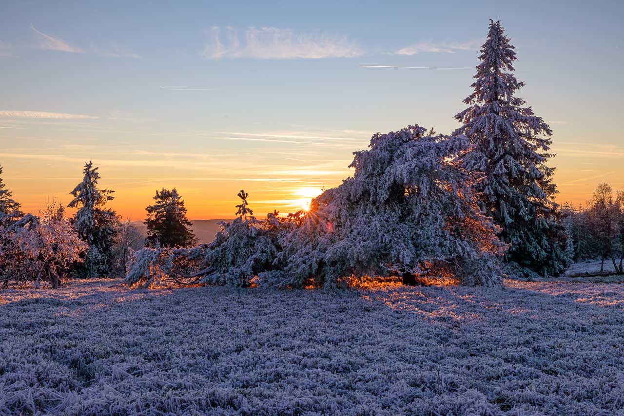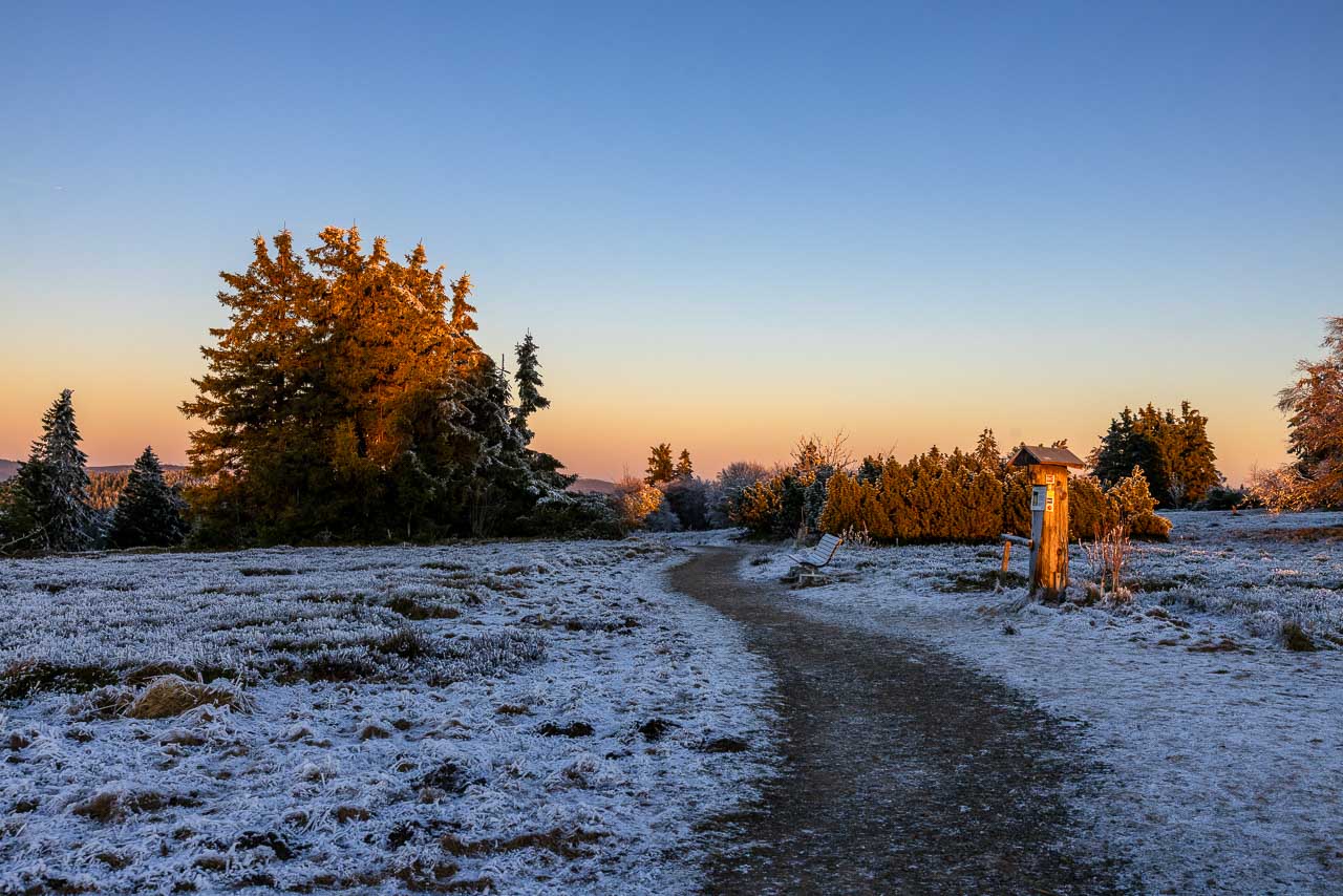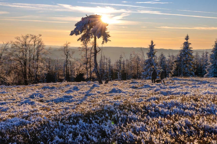 Ein Winterspaziergang am Kahlen Asten entfaltet seinen ganz eigenen Zauber. Die klare Winterluft und die mit Reif bedeckte Astenheide schaffen eine märchenhafte Atmosphäre. Am späten Nachmittag scheint die tief stehende Sonne zwischen den Bäumen hindurch; Licht bricht sich an Zweigen und Nadeln – perfekte Bedingungen für „Sonnen-Sternchen-Fotografie“.