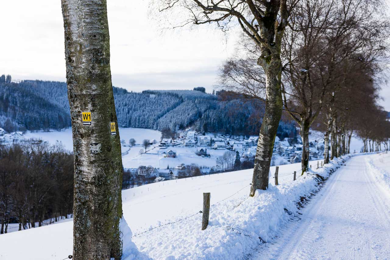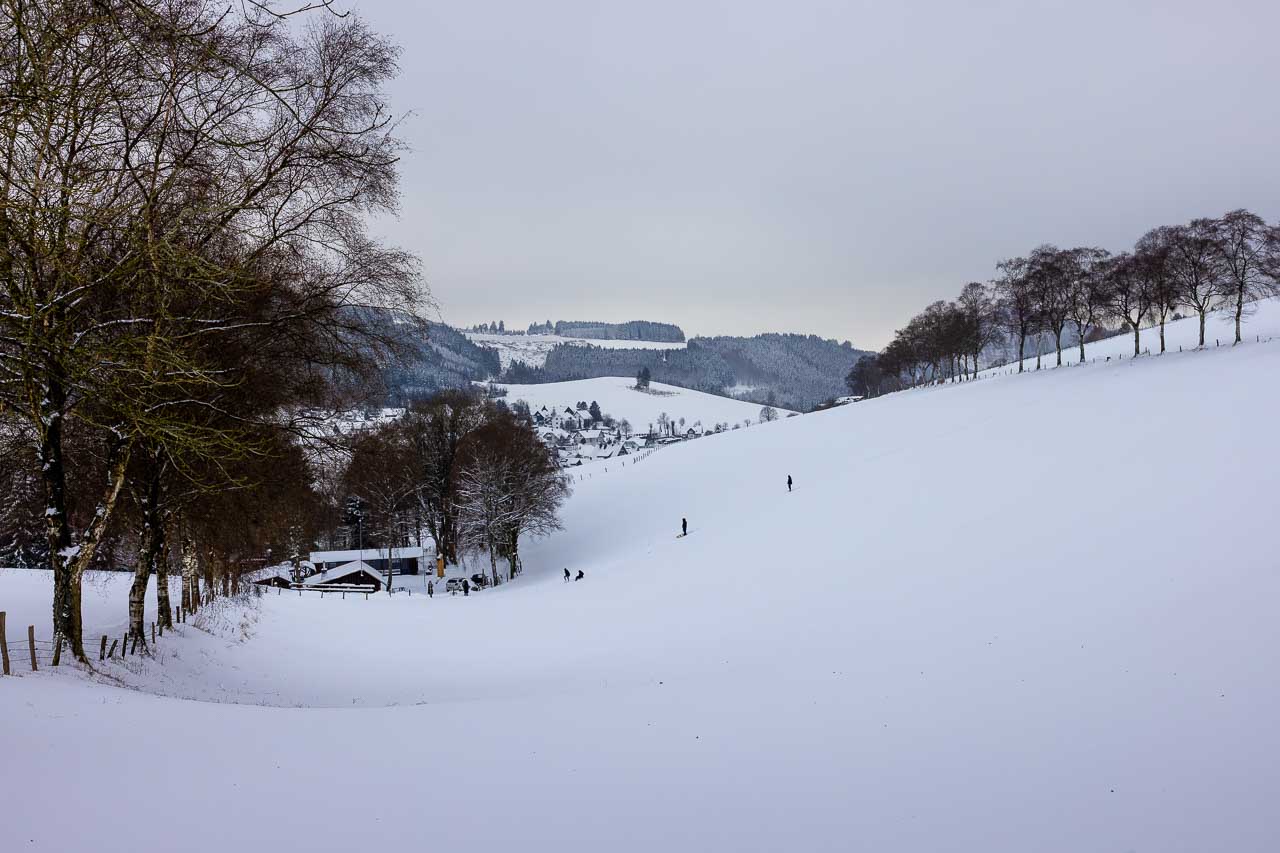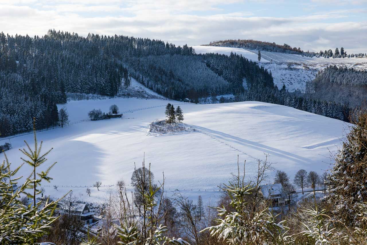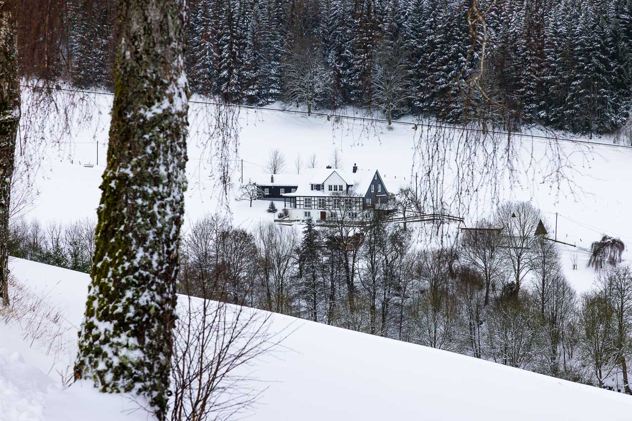 Westfeld liegt eingebettet im Tal der Lenne und ist das erste Dorf, das der Fluss auf seinem Weg durchquert. Es zählt sicher zu den schönsten Ecken im Schmallenberger Sauerland. Vor allem im Winter macht die Kombination aus gepflegtem Fachwerk und der verschneiten Landschaft den Ort zu einem echten Hingucker. Ich mag besonders die Stimmung während der blauen Stunde. Vor einigen Tagen bin ich direkt nach einem Schneeschauer losgegangen, genau als die Dämmerung einsetzte und sich der Himmel in dieses tiefe, kühle Blau färbte. Da die Straßen noch von einer dünnen Schneeschicht bedeckt waren, sah das Ganze einfach herrlich aus – die Stimmung war in diesem Moment noch schöner als sonst. Es war einer dieser Augenblicke, in denen das Dorf eine ganz besondere Ruhe ausstrahlte, die man am liebsten festhalten möchte.