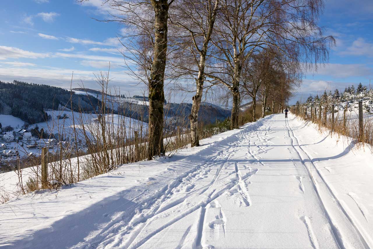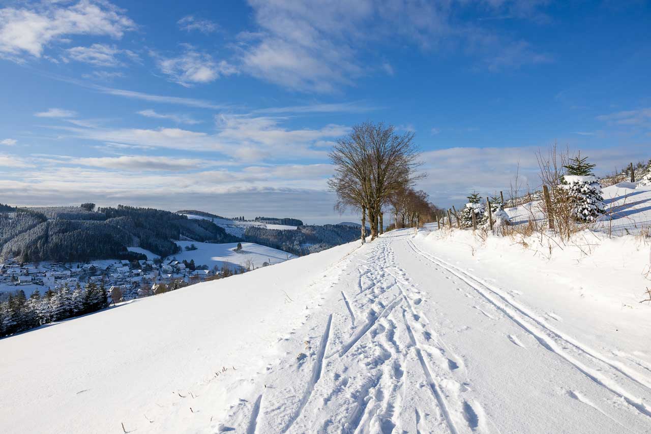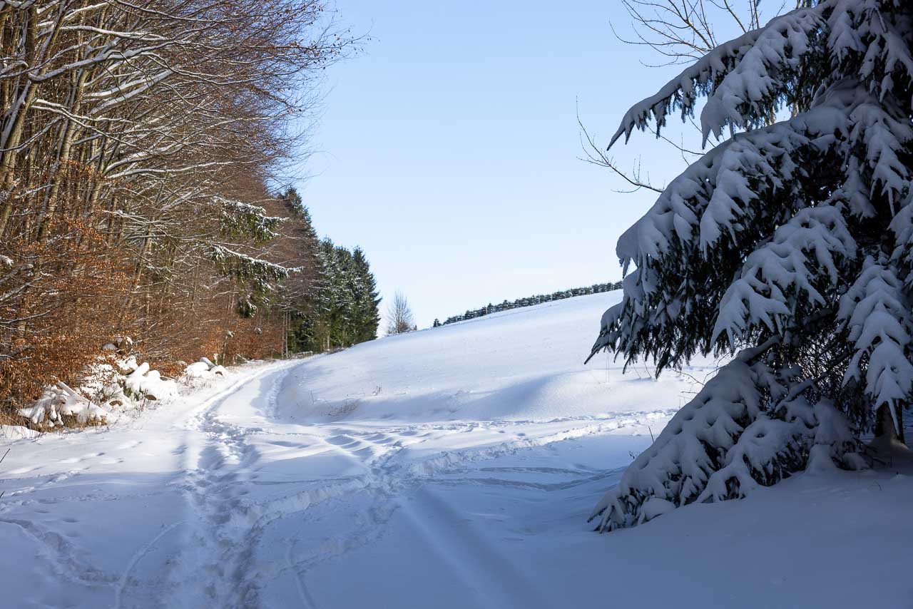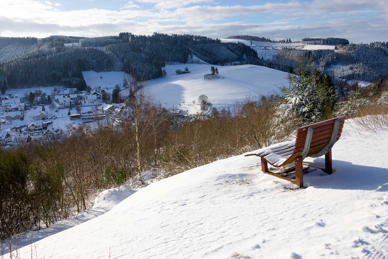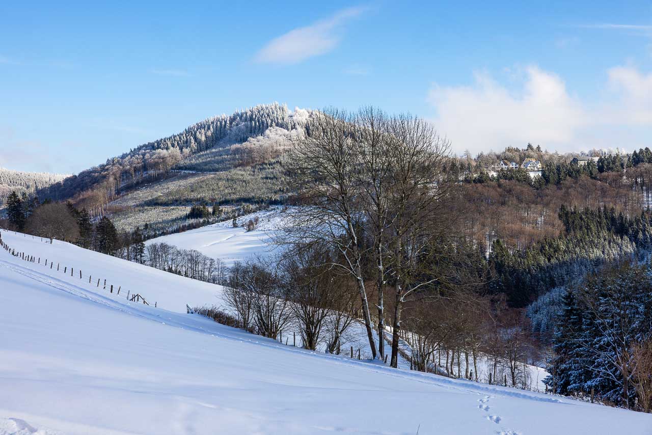 Westfeld liegt eingebettet im Tal der Lenne und ist das erste Dorf, das der Fluss auf seinem Weg durchquert. Es zählt sicher zu den schönsten Ecken im Schmallenberger Sauerland. Vor allem im Winter macht die Kombination aus gepflegtem Fachwerk und der verschneiten Landschaft den Ort zu einem echten Hingucker. Ich mag besonders die Stimmung während der blauen Stunde. Vor einigen Tagen bin ich direkt nach einem Schneeschauer losgegangen, genau als die Dämmerung einsetzte und sich der Himmel in dieses tiefe, kühle Blau färbte. Da die Straßen noch von einer dünnen Schneeschicht bedeckt waren, sah das Ganze einfach herrlich aus – die Stimmung war in diesem Moment noch schöner als sonst. Es war einer dieser Augenblicke, in denen das Dorf eine ganz besondere Ruhe ausstrahlte, die man am liebsten festhalten möchte.